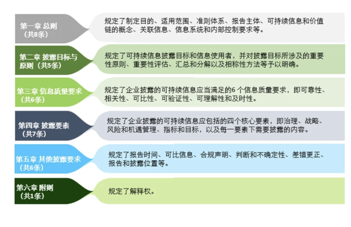 《起草说明》中还指出,我国可持续信息披露的现状是多数企业为自愿披露,缺乏统一标准和规范,不利于鉴证、评级和监管等工作的开展,也不利于发挥可持续信息在投资决策和经济发展的支持作用。因此,制定国家统一的可持续披露准则是十分必要的。